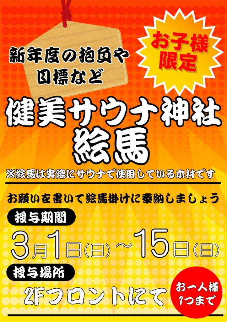 【お子様限定】サウナ絵馬で新年度の抱負を書こう!