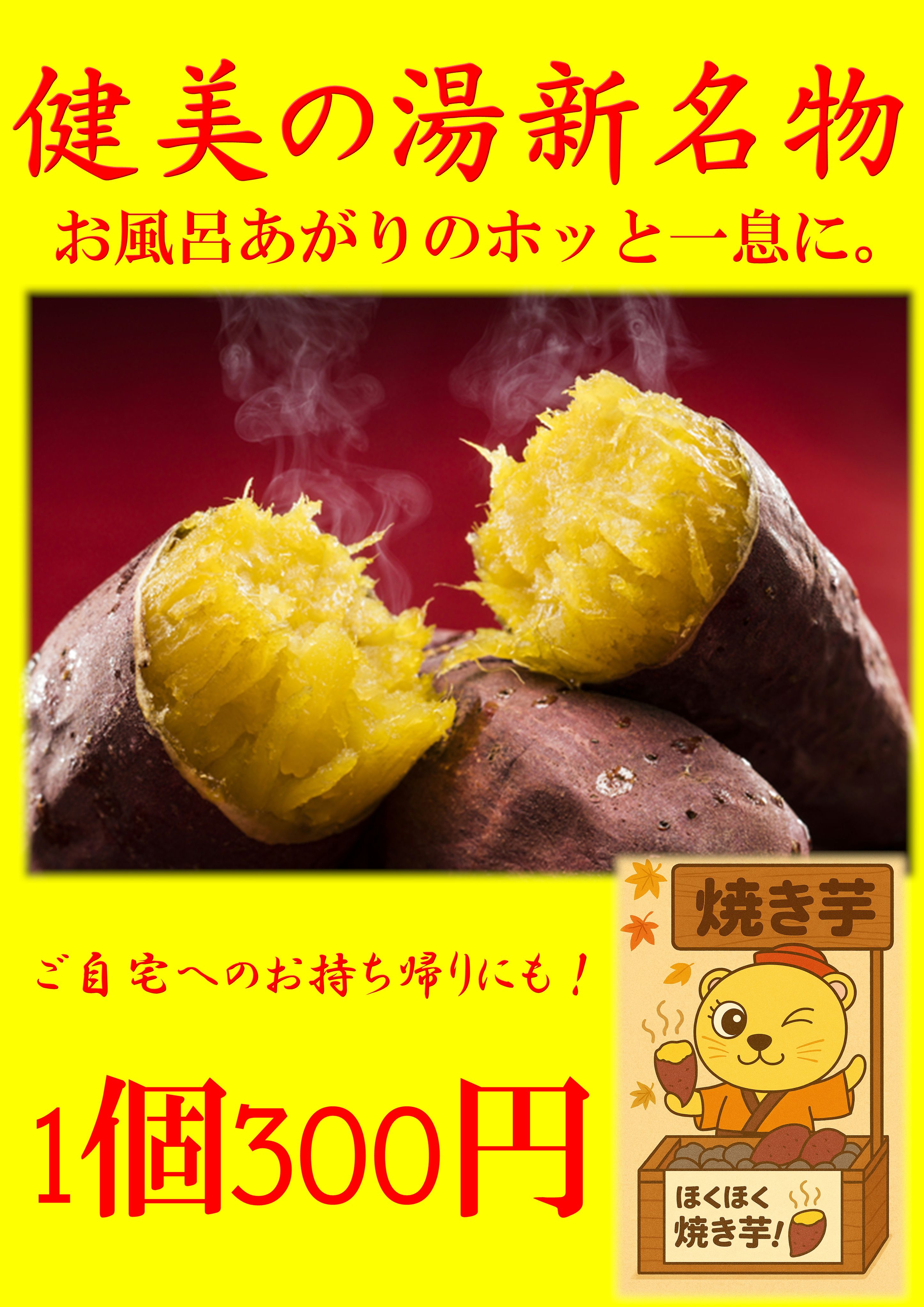 秋の味覚!焼き芋がついに南増尾健美の湯で販売開始しました!